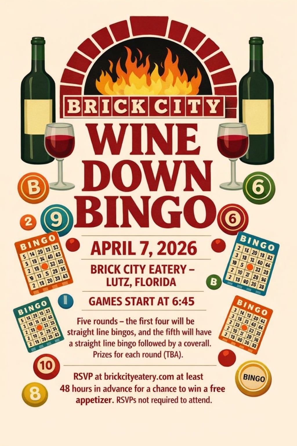 Grab a glass of wine and get ready for a fun night of bingo at Brick City Eatery!